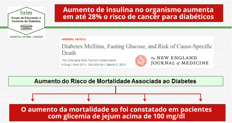 Os altos níveis de insulina destroem as células e fazem com que se dividam de forma anormal, levando à formação de tumores. Por isso, as estatísticas mostram que 25% dos diabéticos acabam desenvolvendo câncer.